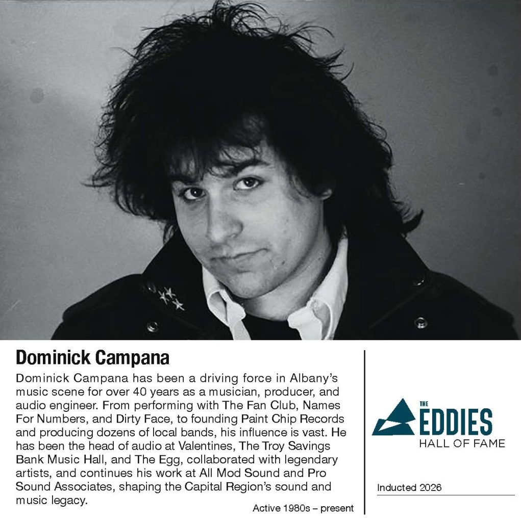 Dominick began as the lead guitarist for The Fan Club (later Names For Numbers) in the early 1980s, playing Albany’s local venues and opening for national acts like The Replacements. He went on to form Dirty Face in ‘85, a band that released multiple albums, toured nationally, and became a staple of venues like 288 Lark, Duck Soup, and QE2, sharing the stage with artists including Soul Asylum and The Goo Goo Dolls.