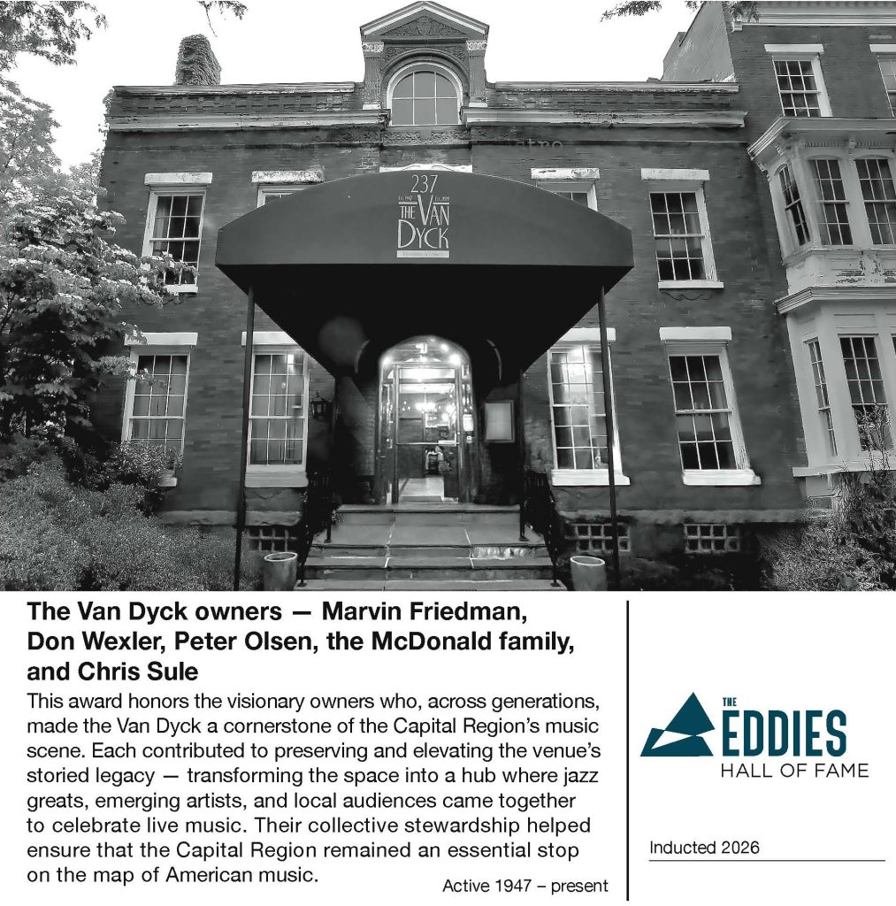 Within a year, Sule expanded programming to honor the building’s jazz legacy, introducing Saturday Night Jazz as a weekly tradition. By October 2024, with Stella and Seven Points firmly established, he debuted the newest chapter in the venue’s storied history: the Van Dyck Music Club. Since then, the space has hosted jazz, comedy, drag, burlesque, and mystery dinner theatre — continuing its evolution as a cornerstone of the Capital Region’s live entertainment scene.
